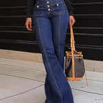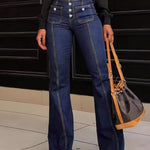 Wenn Sie einen modischen und klassischen Look suchen, wählen Sie unsere Damenjeans mit hoher Taille und Knopfleiste. Das einzigartige Design mit hoher Taille und Knopfleiste betont die Taille und streckt die Beine optisch; das Design mit ausgestelltem Bein verleiht ein Gefühl von Lagenlook und verlängert die Beinlinien; aus hochwertigem Denimstoff, klassisch und langlebig, weich und bequem; geeignet für eine Vielzahl von Kombinationen, ob mit einem Oberteil oder einer Jacke kombiniert, ermöglicht es Ihnen, verschiedene Stile zu zeigen!