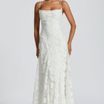 Mit Anmut. Weiblich. Zeitlos. Das Clara Elegantes Maxikleid verkörpert mühelose Raffinesse in ihrer schönsten Form. Mit ihrer fließenden Silhouette und sorgfältig ausgearbeiteten Details betont sie jede Figur und begleitet dich mit natürlicher Eleganz – ideal für romantische Abende, stilvolle Anlässe oder luxuriöse Momente im Alltag.